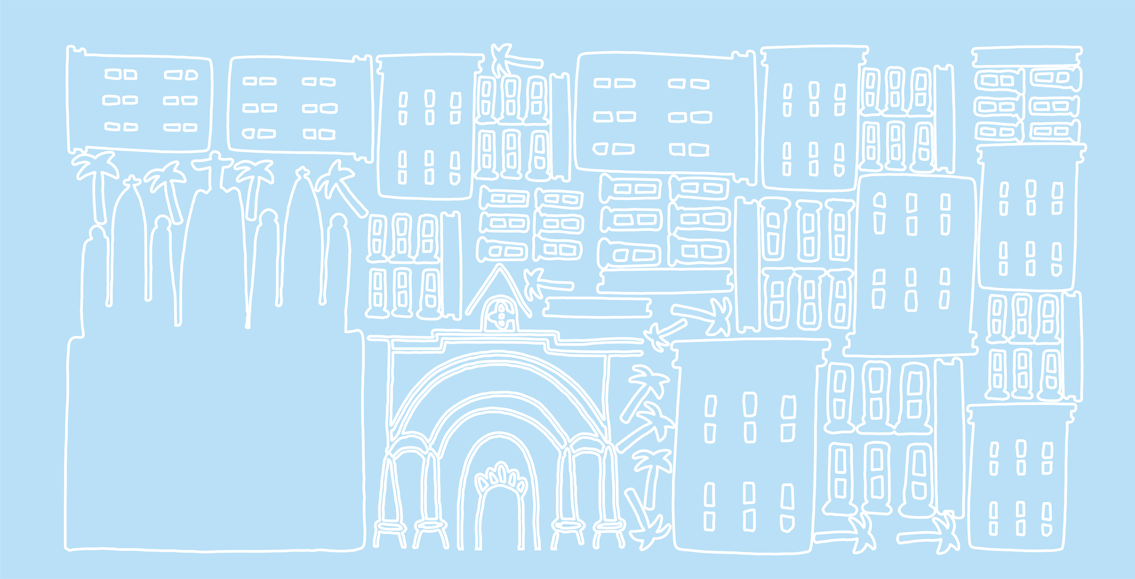 Barcelona and Manchester have a clear contrast in their architecture and nature, making it easy to add variation between the cities while keep in the same visual language; the amount of detail, the line, and the colours are all alike while the buildings and trees make their own clear distinction.