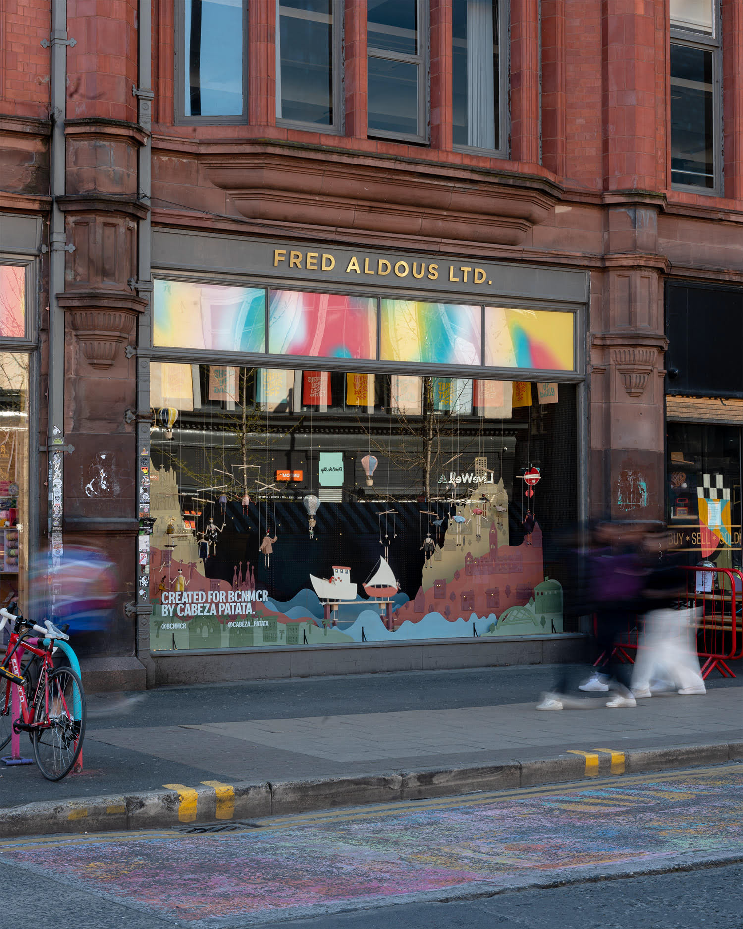 As part of design festival, BCN/MCR, we were invited to decorate the window of this renowned art shop. As the festival celebrates creativity in Barcelona and Manchester we decided to represent the two cities and the artistic connection between them.
