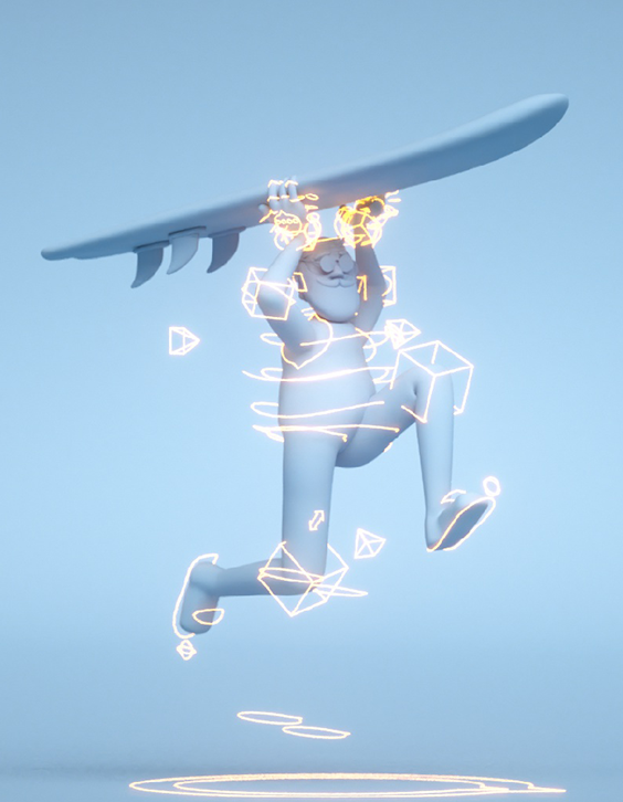 As well as emitting a gentle glow and illuminating the scene in a subtle way, lights from the palm trees are iconic to the city. They light our surfer's path through town and to the beach.