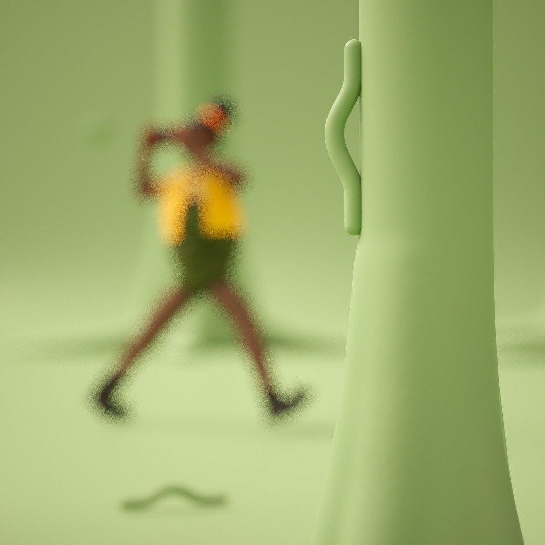 The elements are all hand-modelled, based on real places and authentic objects and signs from them. In order to not crowd the scenes, and to create an interesting realistic yet surreal and magical world, we kept everything but the character in the same colour.