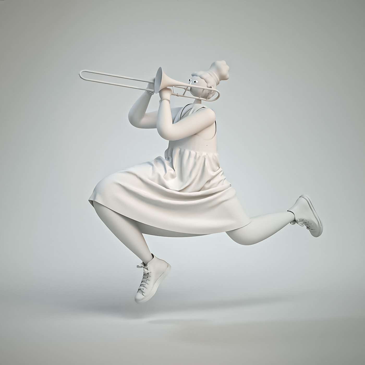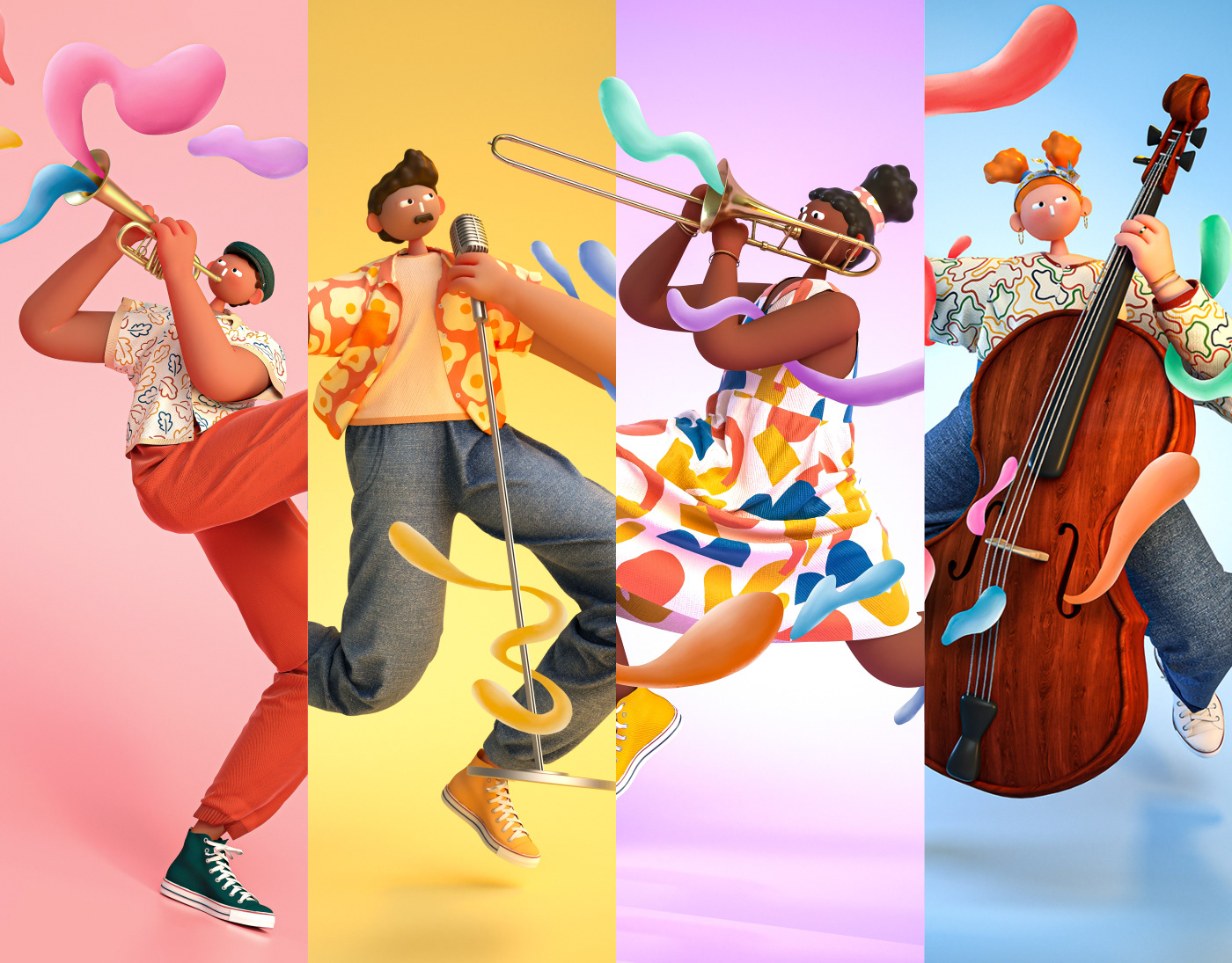 We initially made some sketches to lay out the characters' positions and ensure we cover a range of instruments, postures and moods.