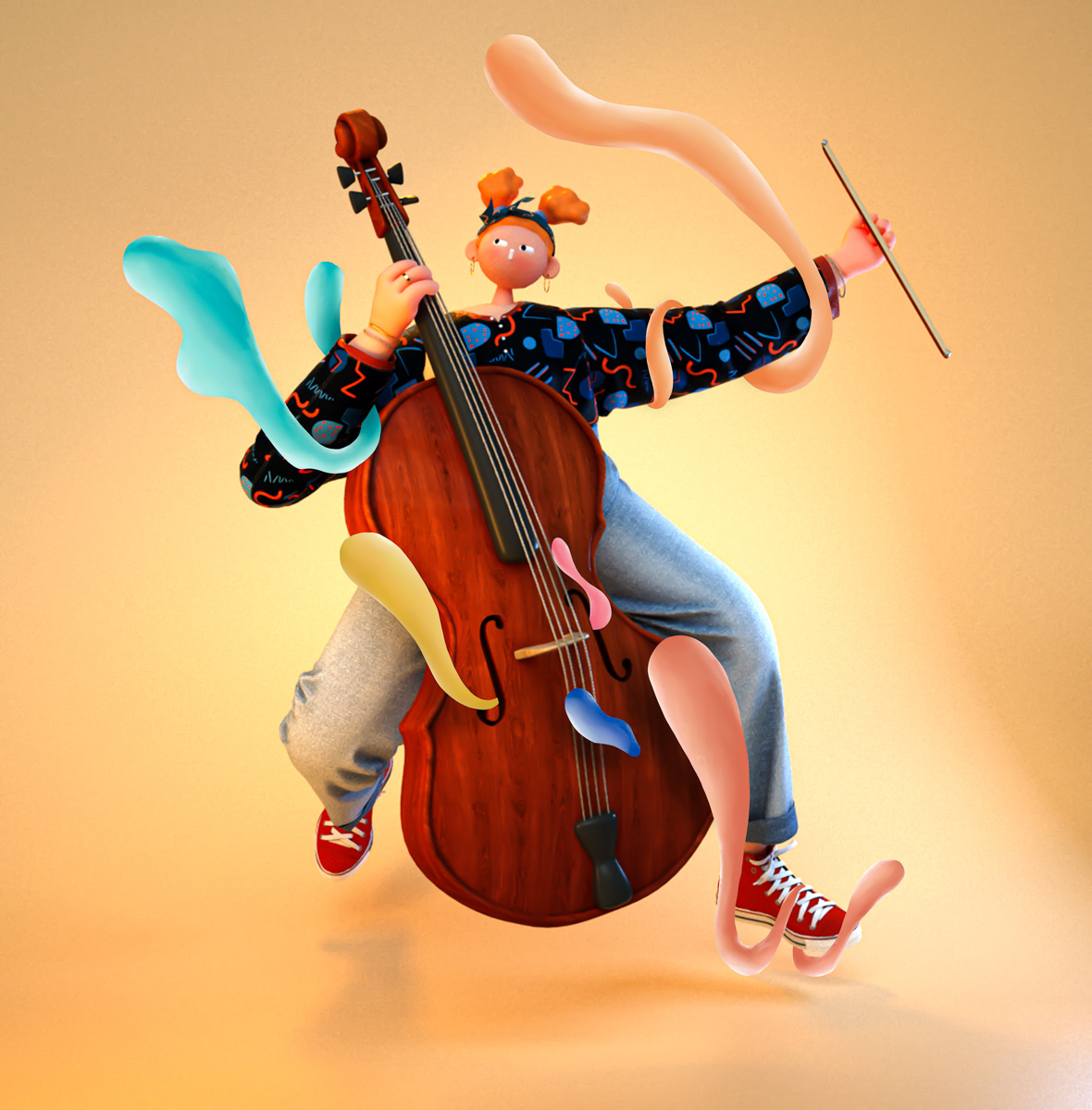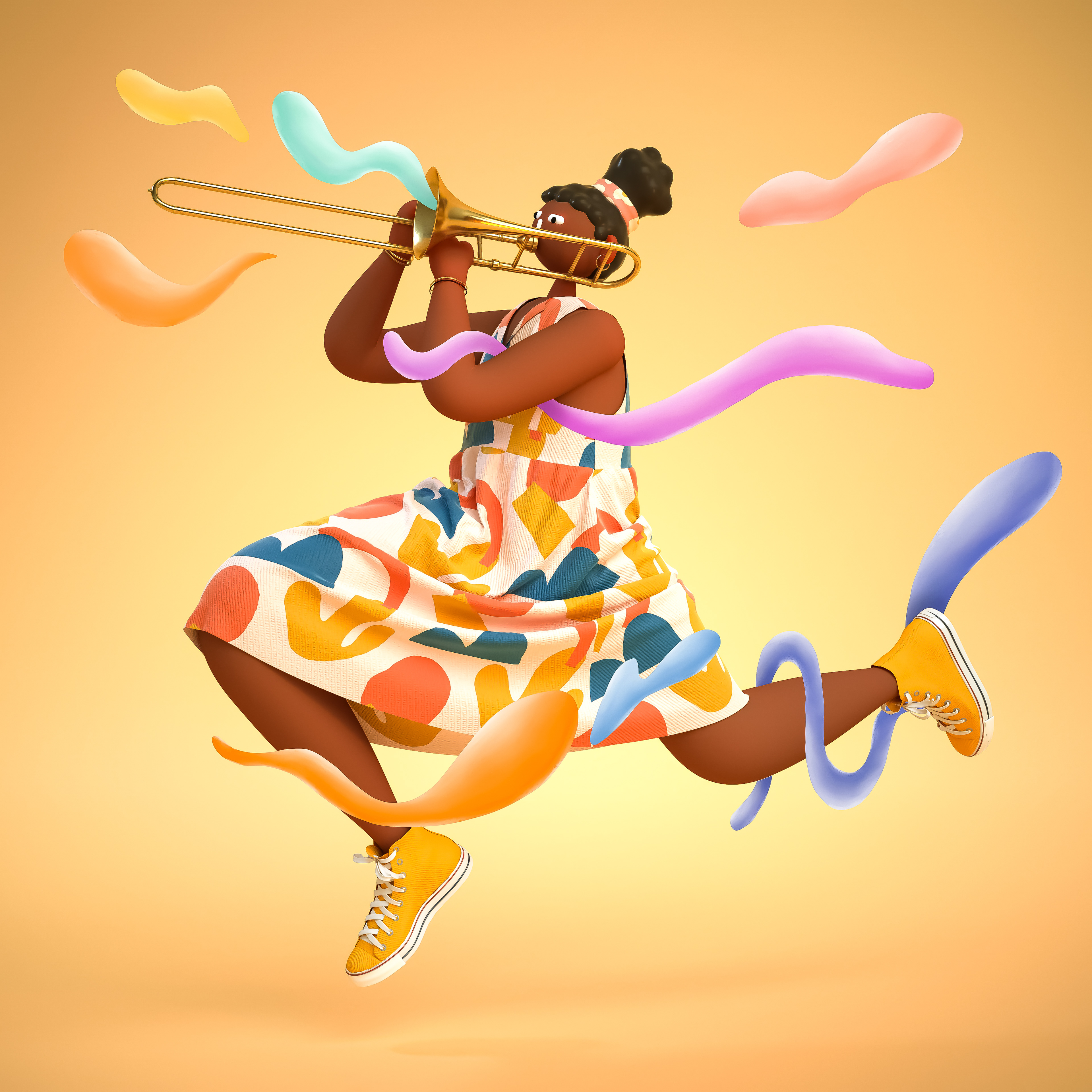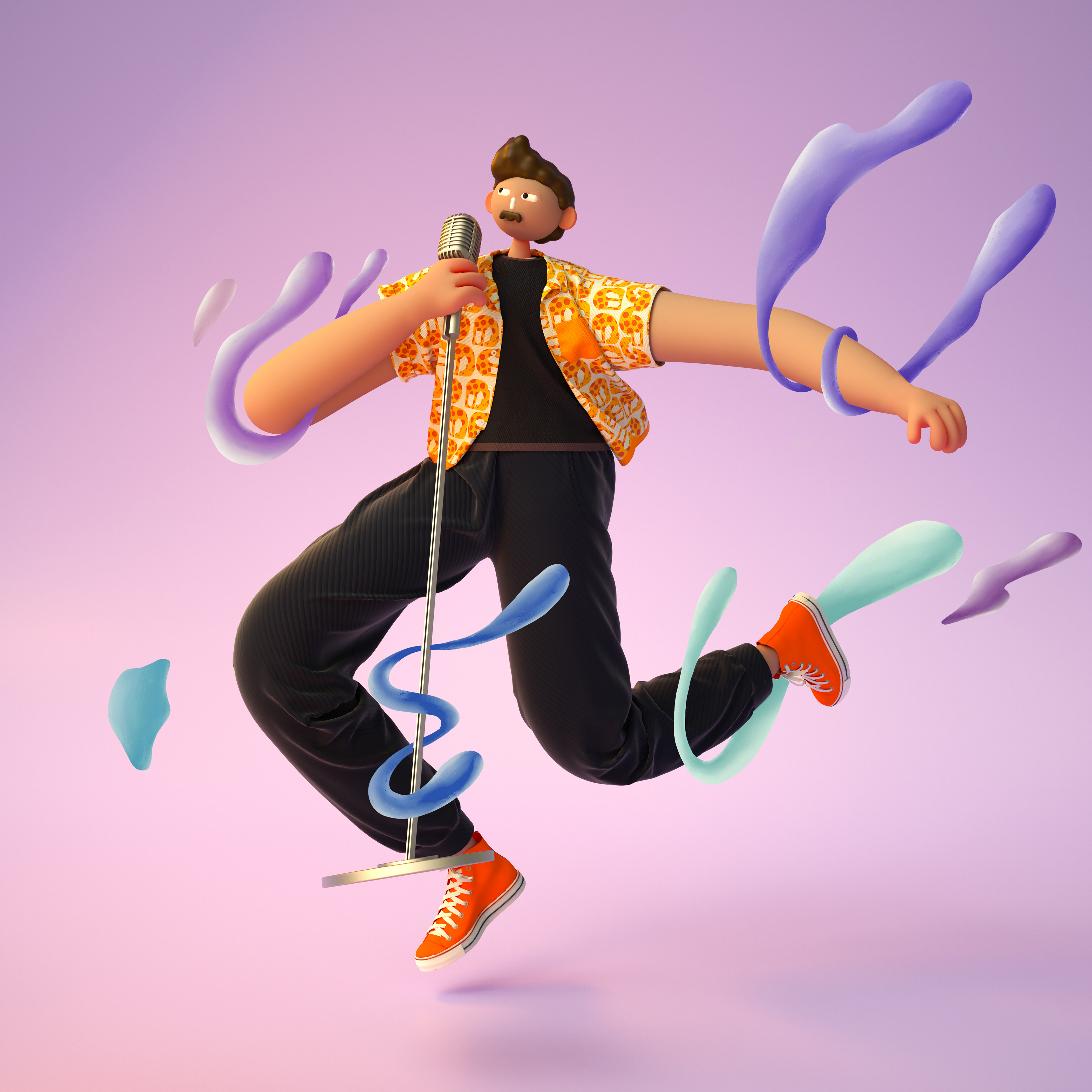 We added 2D shapes on top of the 3D renders to give a tangible representation of the music swirling around the scene.